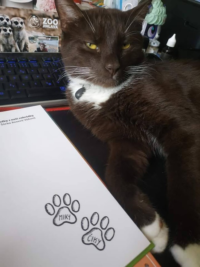 Miky testuje kvalitu papiera pacičkou a Čiko zasa starostlivo sleduje, aby podpisy boli presne tam, kde majú byť. Občas si síce odbehnú uloviť myšku (tú elektronickú, samozrejme), ale potom sa s vervou vracajú k práci. Dávajte pozor, môžu si svoje pacičky úplne ošúchať, ako poctivo podpisujú knižky nielen deťom, ale aj dospelým čitateľom s dušou dieťaťa! 💛